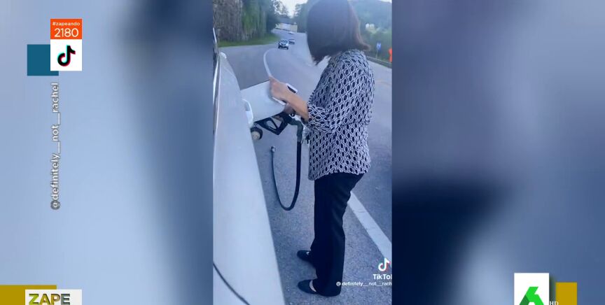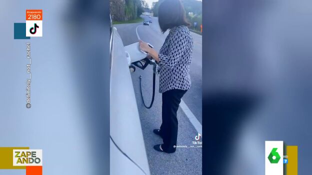 Quique Peinado muestra el momento en el que una mujer se da cuenta de que ha robado "sin querer" la manguera de la gasolinera porque se le había quedado enganchada en el surtidor y no se había dado cuenta. Puedes ver el momentazo en este vídeo de Zapeando.
