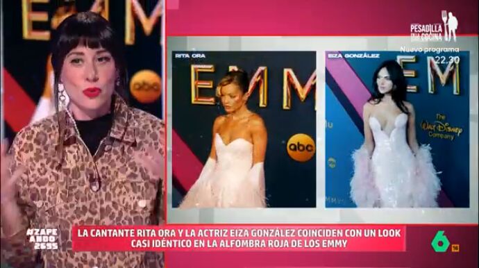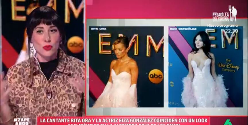 En los últimos Emmy, Eiza González y Rita Ora deslumbraron con un look casi idéntico. La estilista Natalia Ferviú y la zapeadora Isabel Forner analizan las similitudes y diferencias entre los conjuntos de las dos estrellas