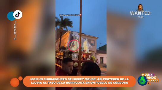 En un pueblo cordobés, no renunciaban a sacar el paso de la Borriquita a pesar de la lluvia y protegían una de las tallas con un chubasquero de Mickey Mouse. "Para la borriquita tenían pensado uno del burro de Shrek pero no había de su talla", bromea Iñaki Urrutia.