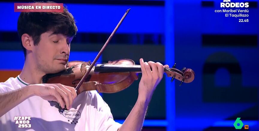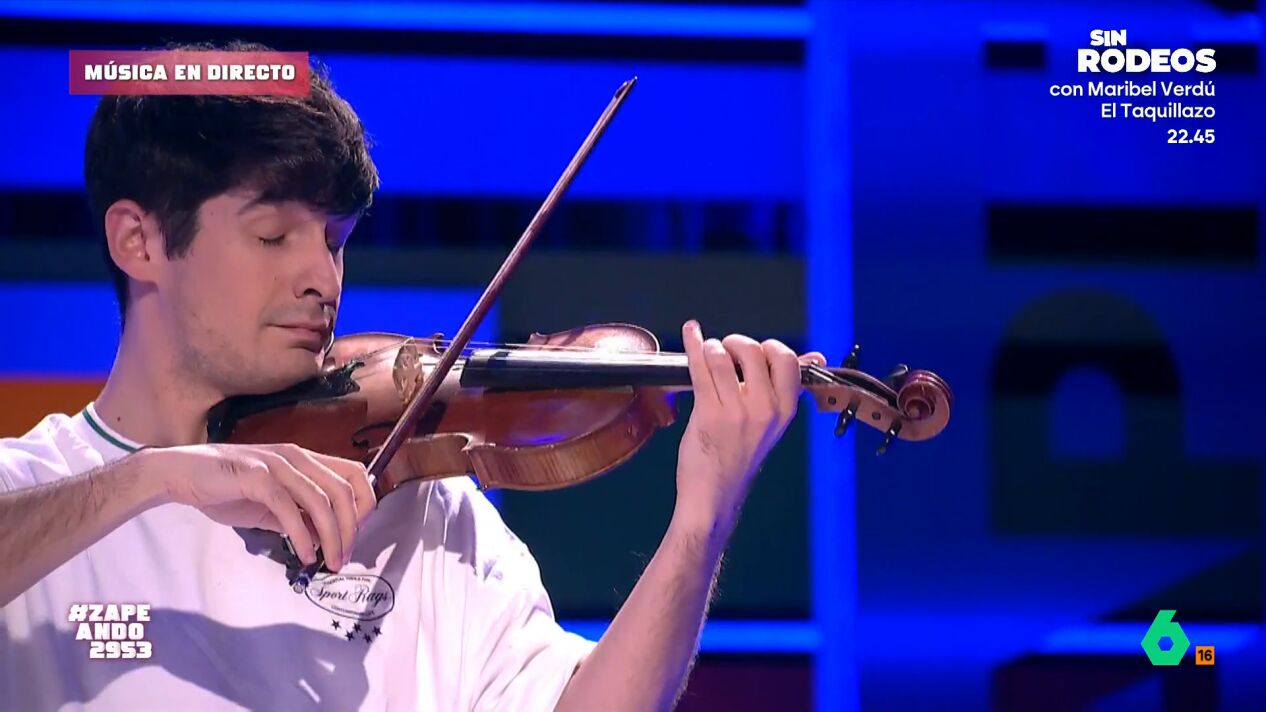 "Os traigo 'Esa diva' barroca", señala el violinista, "a ver si os gusta". El músico toca su particular versión del tema con su violín. Su interpretación consigue que todo el público y los zapeadores le aplaudan y vitoreen.