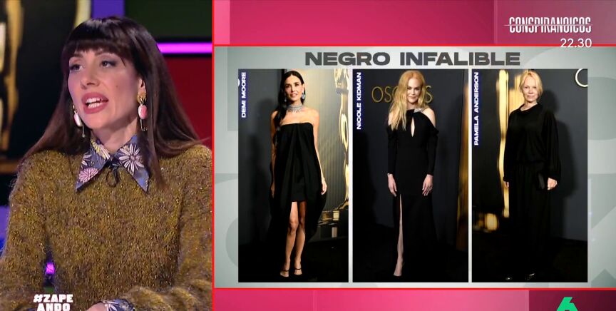 "No porque vaya sin maquillar", indica, sino porque "el vestido no le queda bien, el color la apaga mucho y no la veo especialmente guapa". La estilista considera que hay un "super empate" entre Nicole Kidman y Demi Moore. A pesar de ello, la anécdota de Nicole Kidman quitándose los tacones la ha conquistado por eso se decide por el vestido de la australiana.