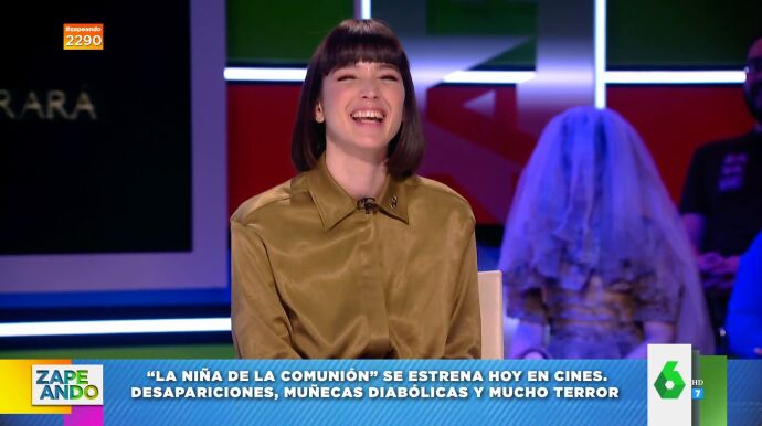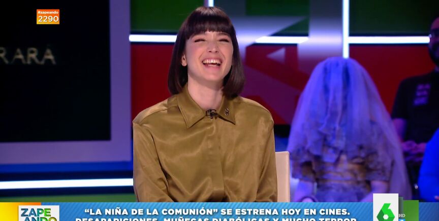 Carla Campra visita Zapeando para hablar de su última película de terror que ha grabado, 'La niña de la comunión'. Por eso, y al conocer las dificultades que tiene el rodaje de un film así, María Gómez le pregunta cómo ha sido grabar escenas "de gente ahogándose, personas que salen disparadas y secuencias de noche": "Hay que ser muy kamikaze para enfrentarse a este tipo de rodajes? ¿Fue duro?".