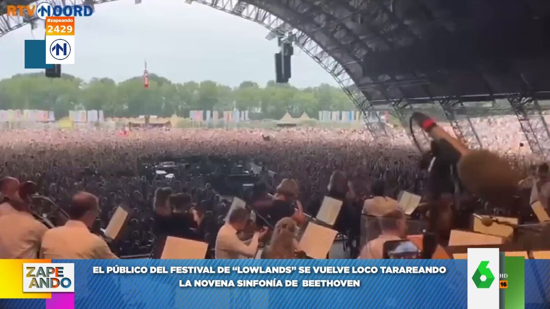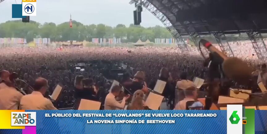 El público del festival Lowlands, en Países Bajos, enloquece al escuchar la 'Novena sinfonía' de Beethoven y se unen a la orquesta que estaba en ese momento en el escenario tarareándola con solo unas palabras "lo lo lo".