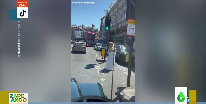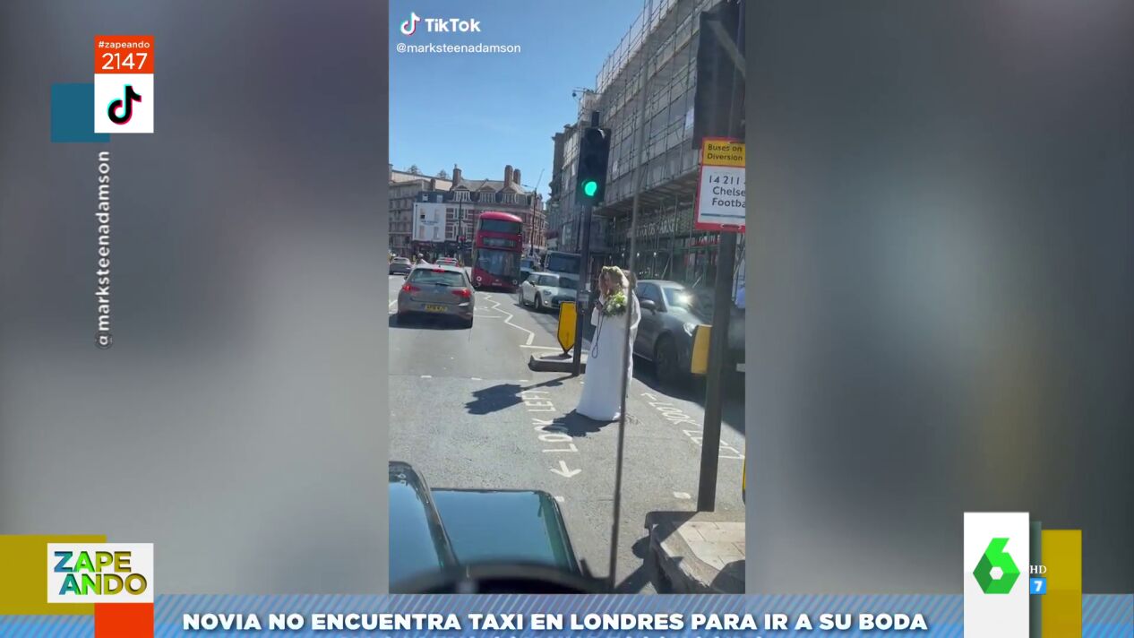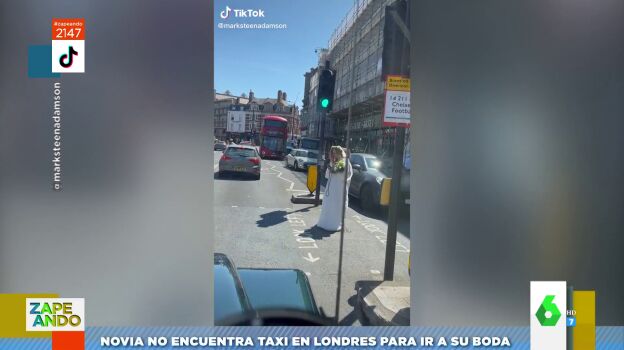 Iñaki Urrutia presenta el vídeo de una mujer que, en el centro de Londres, intenta sin éxito encontrar un taxi para ir su propia boda. Por suerte, finalmente consigue encontrar a alguien que la lleve. Puedes verlo en este vídeo de Zapeando.