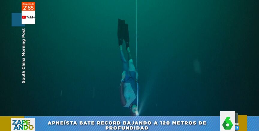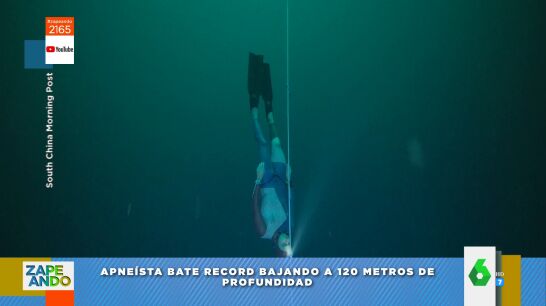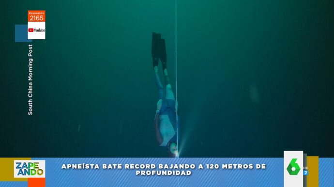 El ser humano sigue batiendo récords a "lo loco", apunta Maya Pixelskaya, que muestra a sus compañeros de Zapeando el último que ha batido el apneísta francés Arnold Jeral, que ha descendido hasta los 120 metros de profundidad en tan solo 3 minutos y 34 segundos y lo ha hecho a "pulmón libre". "¡Qué dolor de cabeza debe de dar eso!", no puede evitar reaccionar la colaboradora.