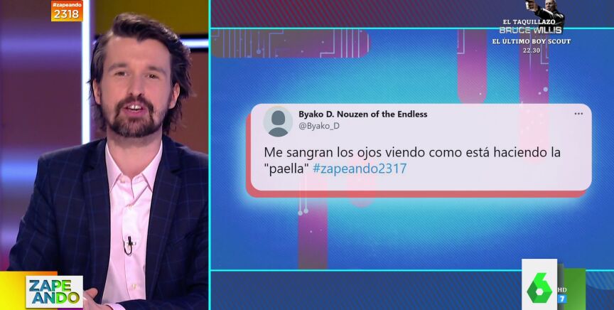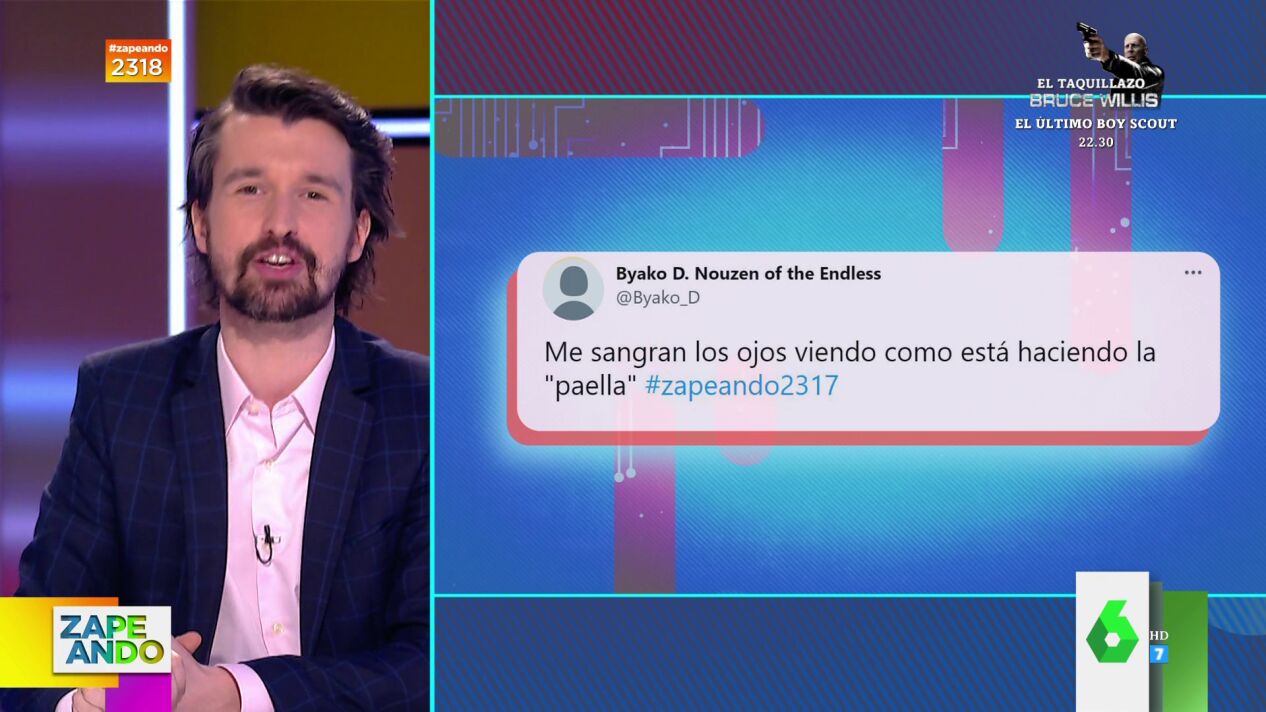 Este martes Gipsy Chef cocinaba en riguroso directo de Zapeando la receta de la auténtica paella valenciana y lo hacía en 10 minutos con un camping gas. "Es algo que no se debería hacer jamás en televisión", comenta Santi Alverú, que muestra a los zapeadores el "odio" que se generó en redes por su receta: "Ardieron las redes sociales y la comunidad de Valencia entera con su paella, y eso que la hizo con los diez ingredientes canónicos que lleva", comenta.