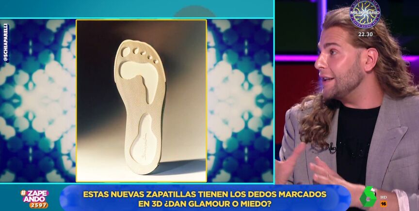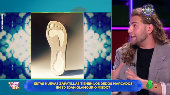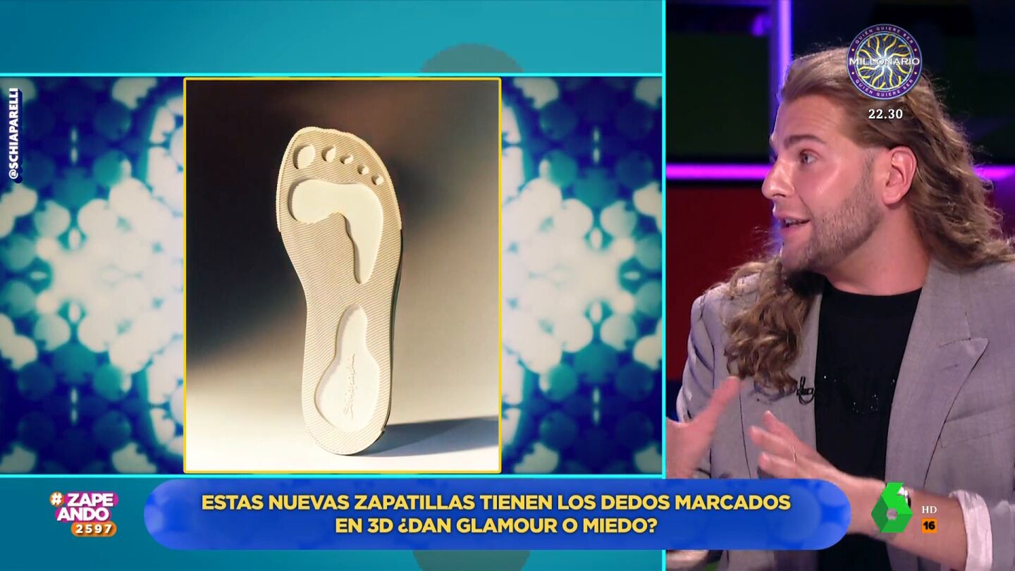 La moda es diversa y, en muchas ocasiones, se atreve a presentar prendas bastante llamativas y extravagantes, solo aptas para valientes. Por ejemplo, uno de los últimos lanzamientos de la firma Schiaparelli. Estas zapatillas deportivas tiene la puntera de color dorado en la que, además, tiene los dedos de los pies esculpidos. Eduardo Navarrete visita Zapeando para comentar esta prenda de calzado que ha llegado para no dejar a nadie indiferente.