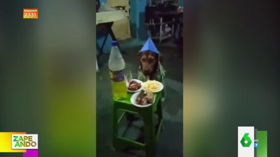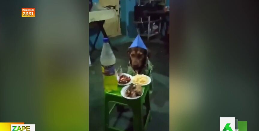 Los dueños de un perro cambian la letra del clásico 'Cumpleaños feliz' para felicitarle en el día de su aniversario y que el can la entienda. "Tiene cara de que no quiere estar ahí", asegura Quique Peinado.