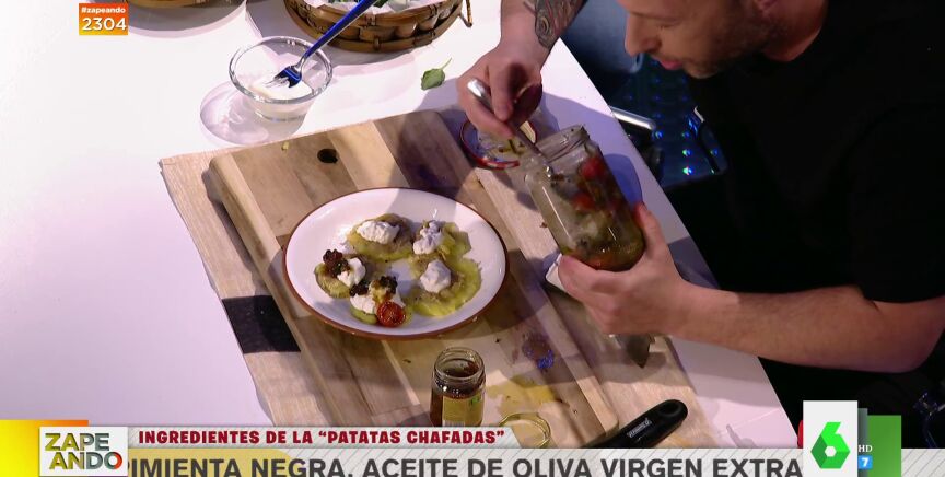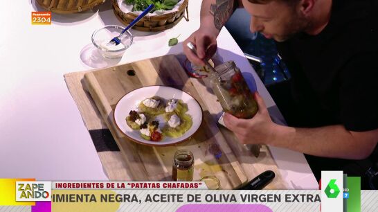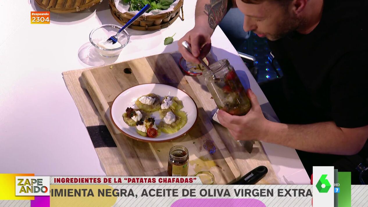 Gipsy Chef cocina en Zapeando su original receta de las patatas chafadas a las que añade una salsa caprese con base de dátiles y tomates. ¡Y en tan solo 8 minutos! ¿Te atreves a cocinarlas tú también?