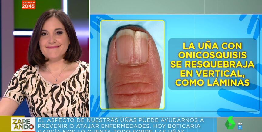 Boticaria García explica en el plató de Zapeando todo lo que nuestras uñas nos pueden decir sobre nuestra salud. Por ejemplo, ¿por qué salen los uñeros? "Lo más probable es que sea una infección", explica la experta, que afirma que, como curiosidad, "ocurre más en el dedo índice, pulgar y corazón". "Si se diagnostica temprano, se pone antibiótico y es fácil, pero si lo dejas estar, se pueden quedar accesos de pus y pueden llegar al hueso y a la gangrena", destaca Boticaria, que resalta que, en algunos casos, incluso, "se puede llegar a amputar".