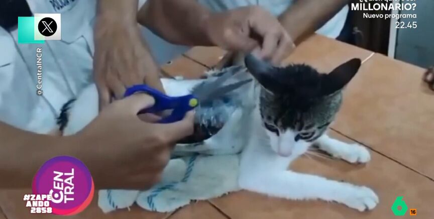"Tiene cara de que ya lo ha hecho más veces", afirma Dani Mateo. "Sí, está tan pancho", responde Maya, al ver la tranquilidad del animal mientras le desenganchan la droga. "Está con cara de 'quitádmelo que yo, en cinco minutos, estoy otra vez en la calle haciendo lo mismo", añade el presentador.