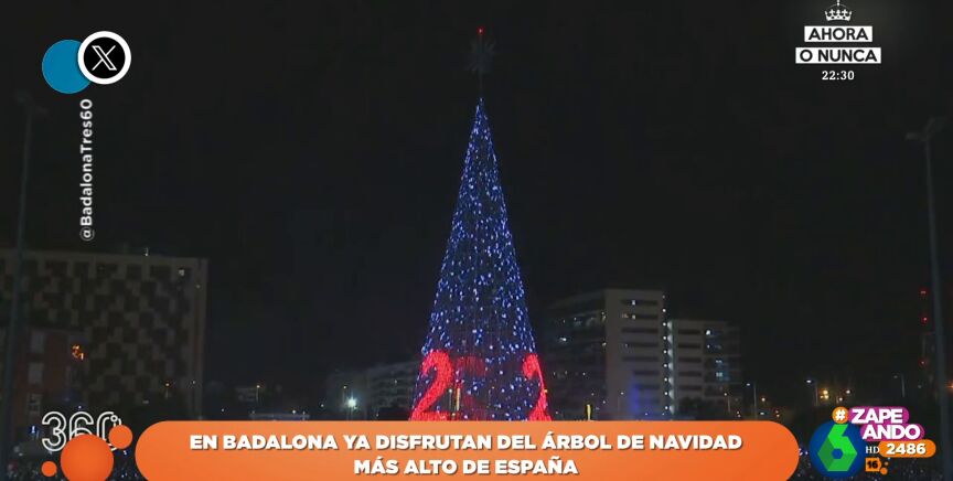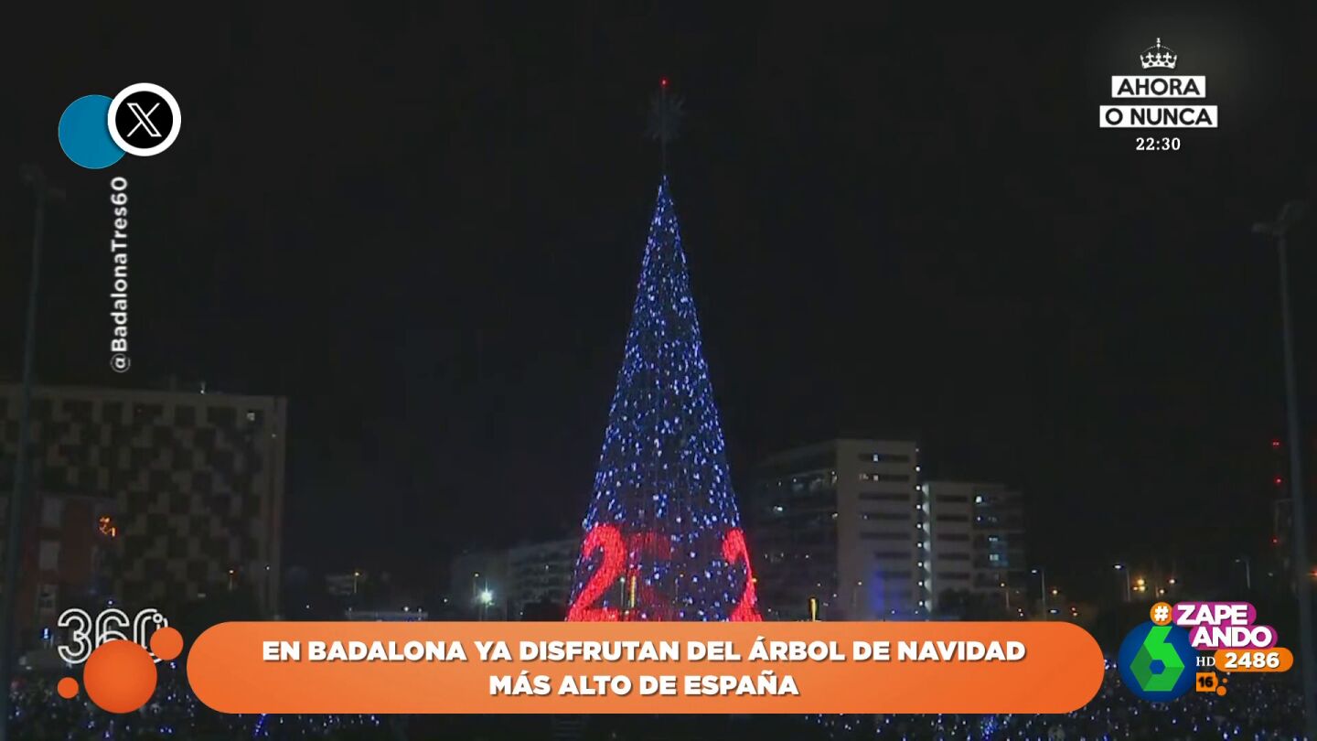 El 'pique' navideño continua: Badalona enciende el árbol de Navidad más alto de España