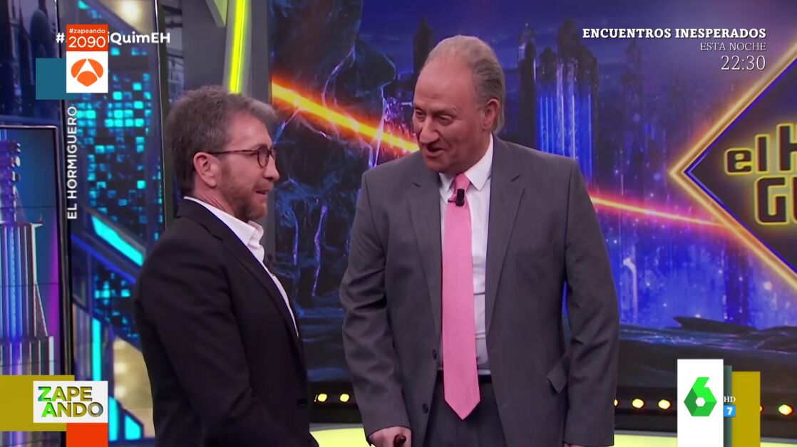 Desde la polémica foto hasta el 'bizum' a Felipe VI: así fue la entrevista de Pablo Motos al doble del rey Juan Carlos en 'El Hormiguero'