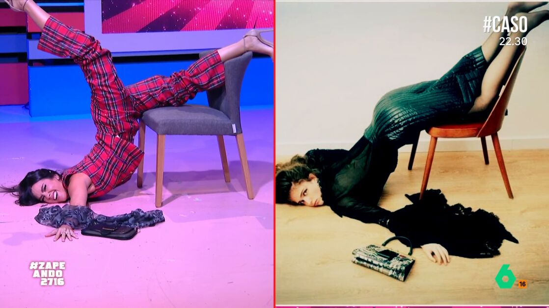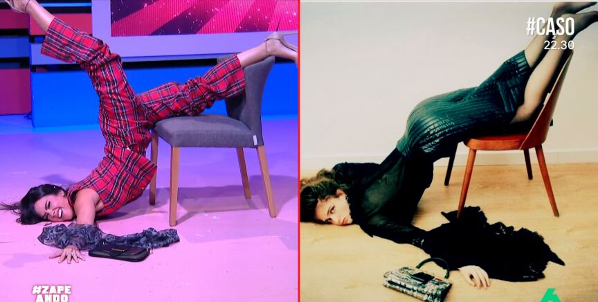 Por su parte, Cristina Pedroche ha imitado una de las poses más complicadas: "Es la primera vez que me siento en todo el día". Además, Pedroche ha ido más allá y le ha dado un toque nuevo a la pose.