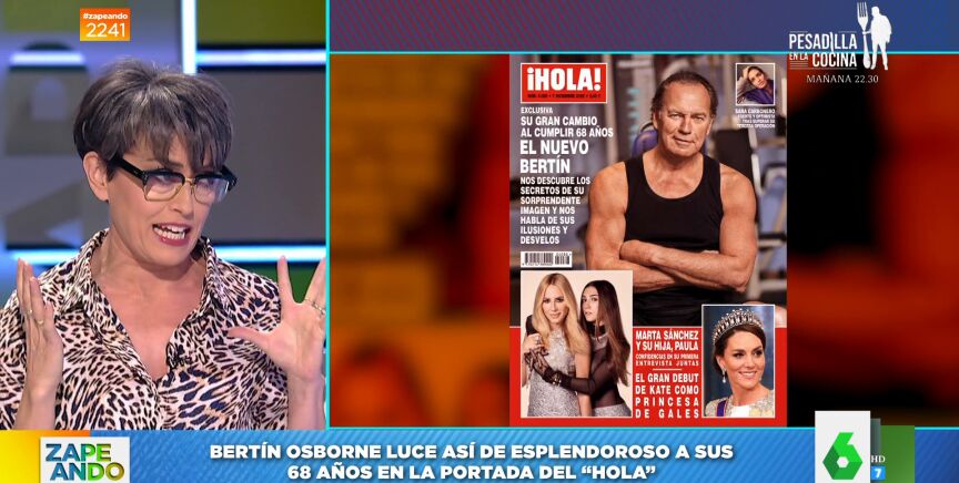 Bertín Osborne se "ha quitado el pantalón de pinzas y la camisa" para la revista ¡HOLA! y "nos ha dejado a todos ojipláticos", comenta Thais Villas con sus compañeros de Zapeando, a los que le enseña la imagen que ha causado furor. "¡Es un adonis!", espeta Valeria Ros, y Cristina Pedroche no puede hacer otro que darle la razón: "Está muy fuerte".