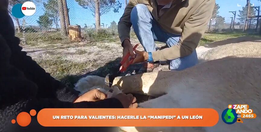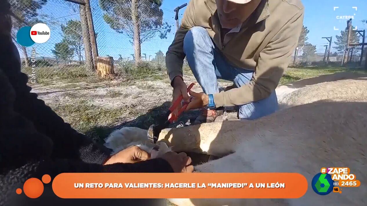 Como se ve en el vídeo, una de las labores que debe realizarse en los recintos donde hay leones es cortarles las garras. Una 'manipedi' muy extrema solo apta para valientes.