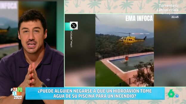 Francisco deja claro que, si un helicóptero se acerca a tu casa para coger agua de la piscina "no te puedes oponer, es un delito". De hecho, señala que habría que retirar cualquier objeto que pudiera salir volando o dañar las aspas del aparato y, a ser posible, meterse en casa: "Vuestro vídeo no lo va a petar en redes sociales, vamos a tener sentido común", afirma.