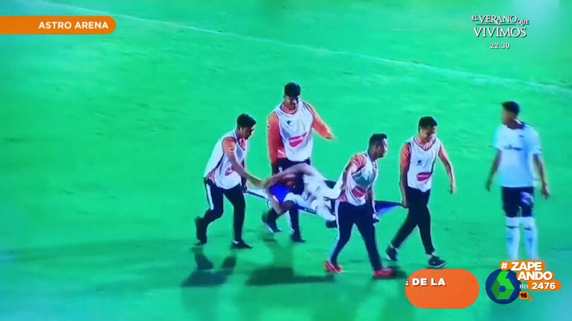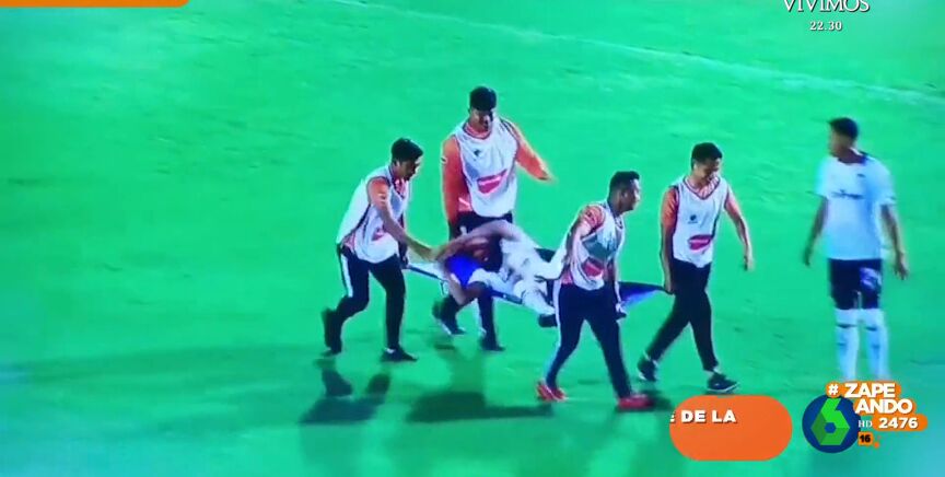 Este se tira al césped y finge haberse caído mientras los camilleros se quedan asombrados, pero este no se conforma con eso y les echa la bronca para reforzar su interpretación. "¿Se puede tener más cara? ¿Se puede ser peor actor?", comenta la zapeadora.