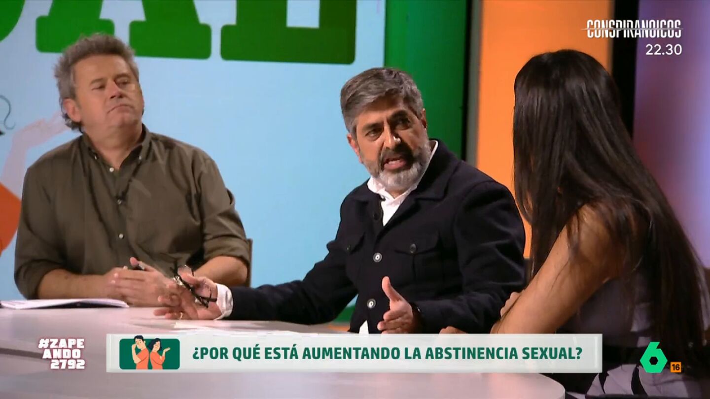 El psicólogo Arun Mansukhani visita Zapeando para hablar sobre una tendencia que está aumentando en los últimos años: la abstinencia sexual. El psicólogo expone que hace 30 o 40 años, "los sexólogos pensábamos que las relaciones iban a ir aumentando, que la libertad sexual iba a llevar a más sexo, y lo que estamos viendo es que no necesariamente". "La libertad sexual está llevando a que haya gente que no quiera tener relaciones sexuales", añade.