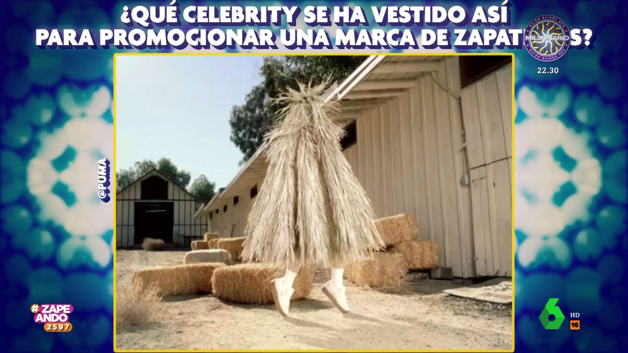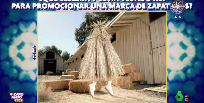 Eduardo Navarrete visita Zapeando para hablar sobre una llamativa campaña de zapatillas deportivas que ha protagonizado una conocida artista. Esta no ha dudado en cubrirse de hierba y paja para lucir este accesorio.