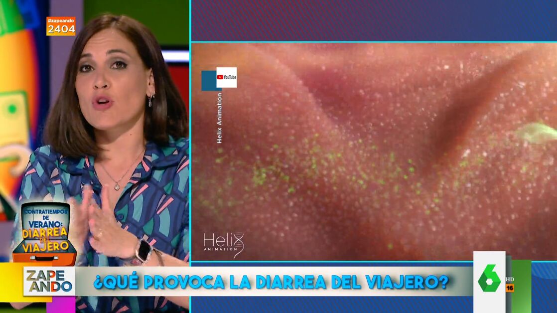Boticaria García visita Zapeando para hablar de la diarrea del viajero, una enfermedad que puede amargarte el verano y tus vacaciones. Según explica en este vídeo, la provocan "alimentos o agua contaminada". Y, es que, "la bacteria escherichia coli, que llega al intestino por agua residuales, es la responsable de la mayor parte de las diarreas de viajero", explica la experta, que aclara cuáles son sus síntomas y cómo diferenciarla de una diarrea normal: "Se tienen 4 deposiciones sueltas en un periodo de 24 horas o 3 en 8 horas".