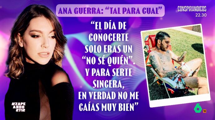 El tema no se queda ahí. En otra parte de la canción, la canaria canta: 'Tú siempre tan insistente y yo que no te quería ver, tus tatus de adolescente. Era tan evidente, no éramos Barbie y Ken'. "Ana, ¿qué problema tienes con los tatus de Víctor?", pregunta el zapeador.