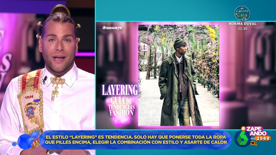 El experto en moda explica que el estilo 'layering' consiste en combinar multitud de capas de ropa con distintas texturas y expresa que le parece una tendencia "maravillosa".
