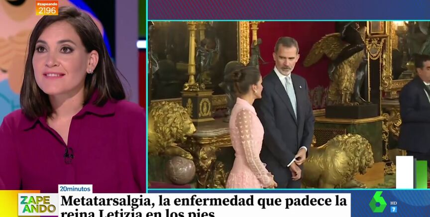 La reina Letizia ha confirmado que padece Neuroma de Morton, una enfermedad crónica en los pies que se le ha agravado por el uso continuado de zapatos de tacón alto. A esto se le suma que la monarca padece una metatarsalgia crónica, otra enfermedad que le provoca dolor en la "zona que está antes de que le nazcan los dedillos" del pie, explica Boticaria García a los zapeadores.