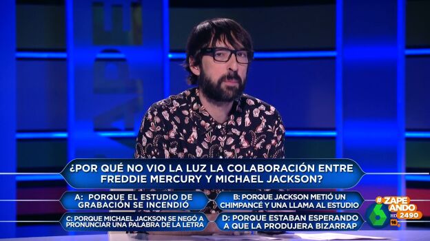 La zapeadora plantea a Quique Peinado una cuestión: "¿Por qué nunca vio la luz la colaboración entre Michael Jackson y Mercury?". ¿Habrá acertado el colaborador? Descúbrelo en el vídeo principal.