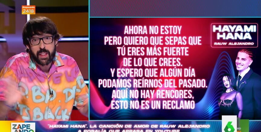 "Es la bajada de pantalones más épica de la historia de música", comenta María Gómez tras escuchar el análisis que Quique Peinado hace de la letra de Hayami Hana, la canción que Rauw Alejandro ha lanzado por sorpresa y ha dedicado a Rosalía.