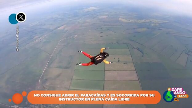 Un instructor socorre a una joven que no es capaz de abrir su paracaídas y se encuentra en caída libre. Ha ocurrido en la región rusa de Kémerovo. Puedes ver este momento en este vídeo de Zapeando.