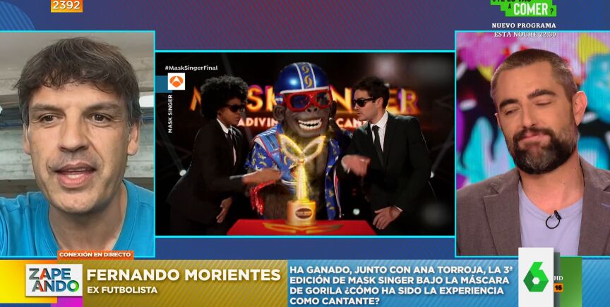 Fernando Morientes, ganador de la tercera edición de Mask Singer junto a Ana Torroja, conecta con Zapeando para hablar de cómo ha sido su paso por el programa y de qué se siente al ganar el programa: "Nunca pensé que iba a estar cantando debajo de un gorila en la televisión". Y, es que, como él mismo reconoce es "una persona muy tímida": "El programa lo hice por mi familia, porque mi mujer me empujó porque a los niños les iba a hacer mucha ilusión", explica.