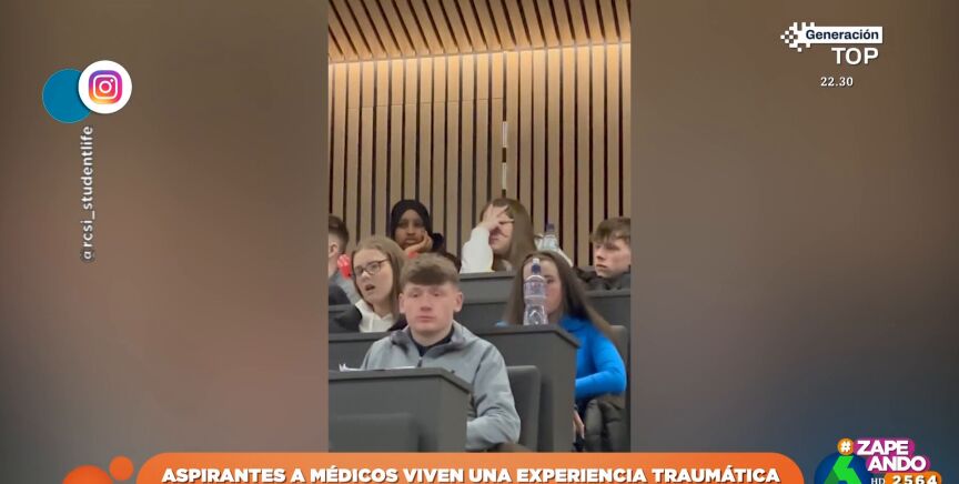 Zapeando analiza las muecas y gestos de horror de un grupo de aspirantes a estudiantes de Medicina, al ver en la facultad de Dublín un vídeo de una cesárea. La divertida anécdota de Dani Mateo al respecto, en este vídeo.