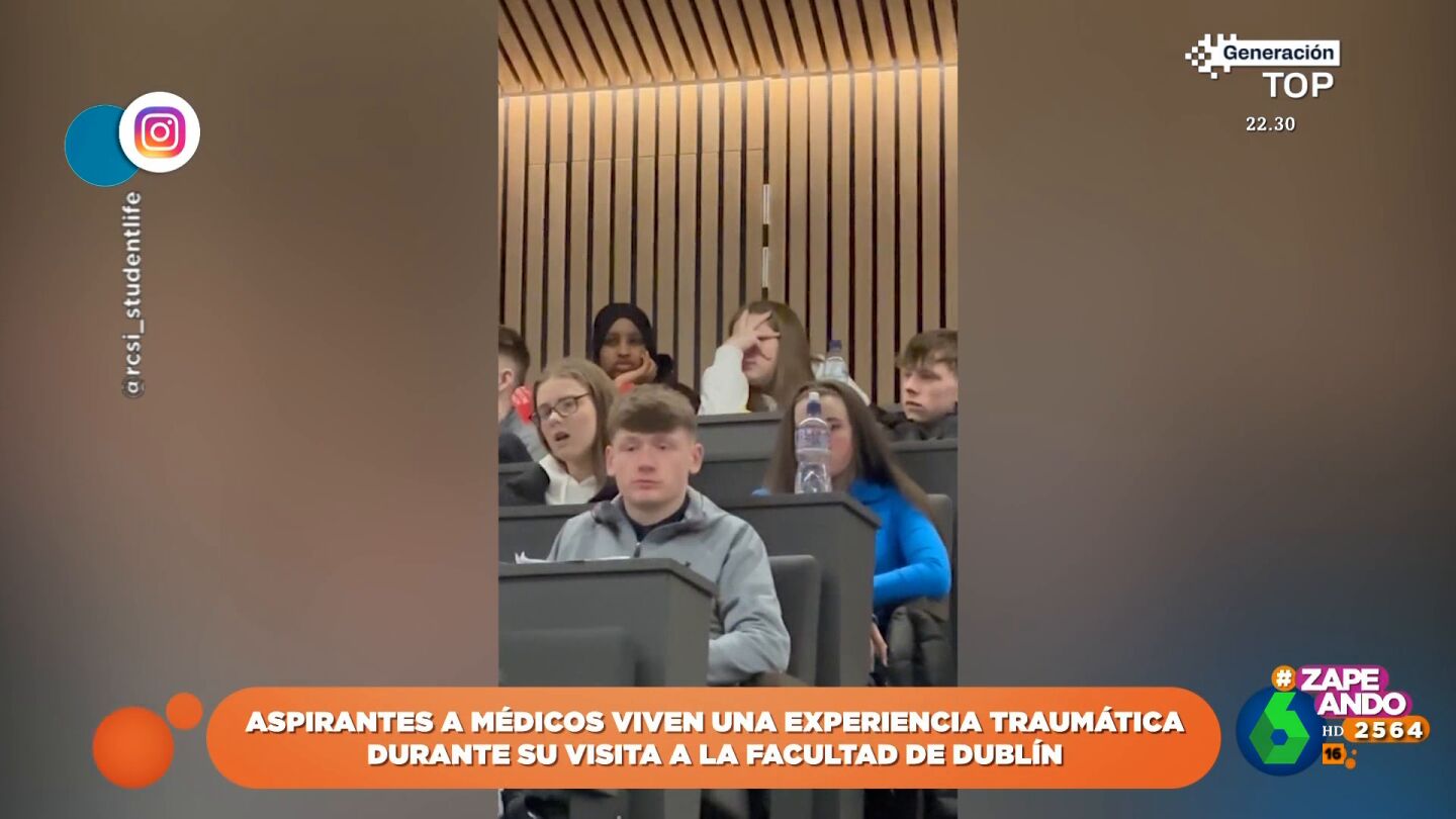 Aspirantes a estudiantes de Medicina se llevaron una sorpresa en su visita a la facultad de Dublín cuando los profesores decidieron ponerle el vídeo de una cesárea. Las caras de los jóvenes son un poema, hasta el punto de que algunos de ellos llegan a taparse los ojos. "Después de esta experiencia más de uno va a replantearse su vocación", comenta Isabel Forner.
