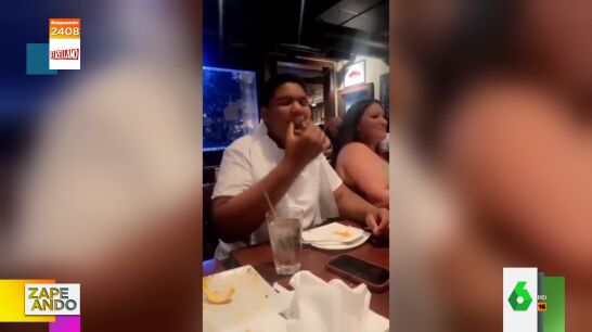 En el vídeo principal de la noticia puedes ver el mal trago que pasa cuando se la mete a la boca que provoca las risas de sus compañeros de mesa. "Escúpelo", le sugiere uno. Lo que ninguno se esperaba era que la escupiera con tanta efusividad.