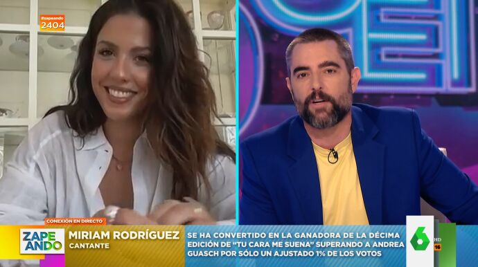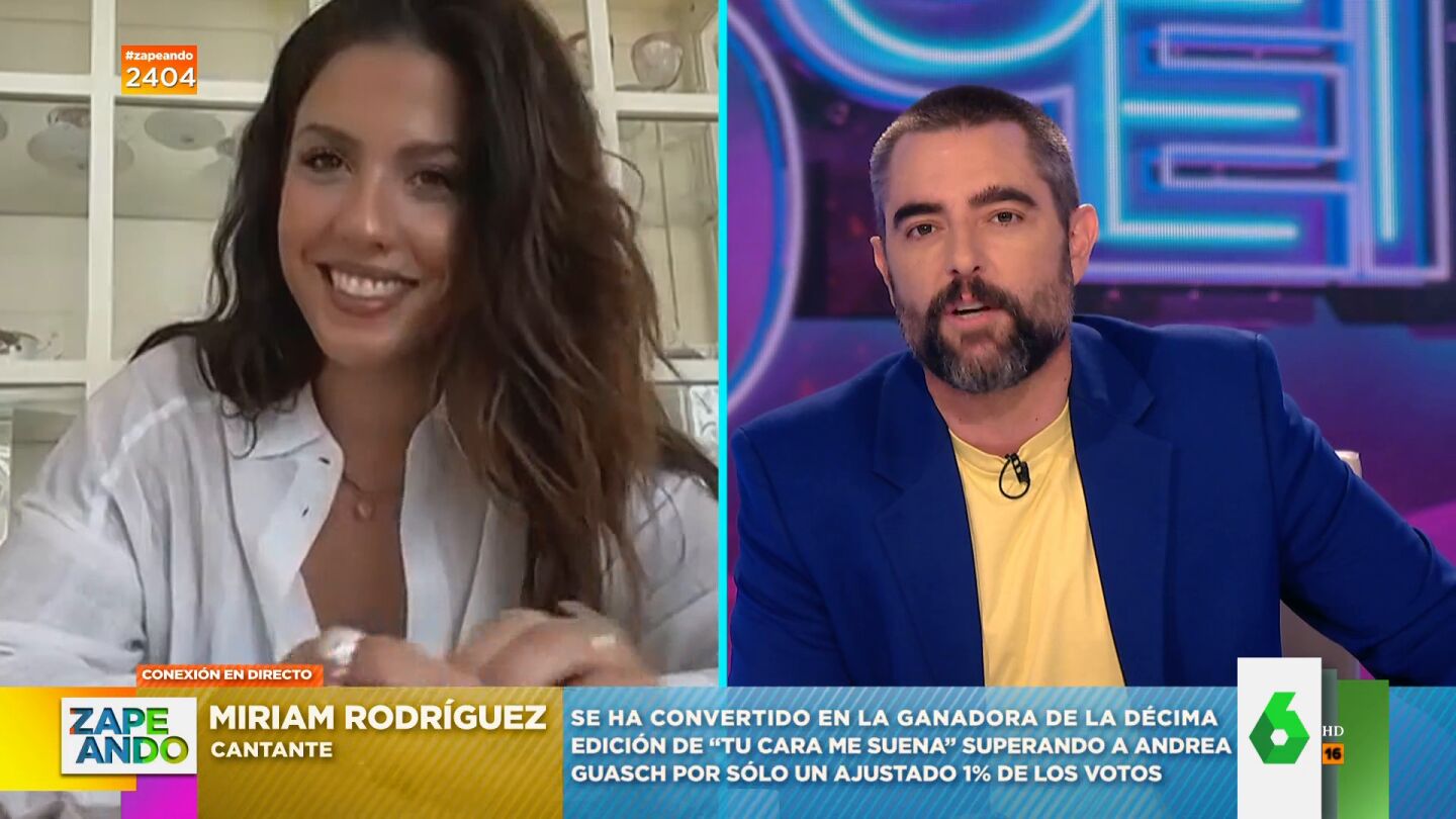 Miriam Rodríguez se convierte en la ganadora de la última edición de 'Tu cara me suena' interpretando a Lady Gaga y su 'Always remember us this way', aunque la gallega confiesa en Zapeando que "el ganar o no nunca ha sido mi objetivo en el programa sino disfrutarlo".