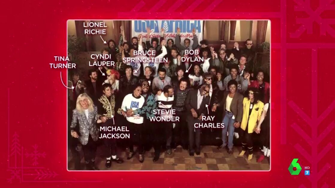 Como explica Renata Zanchi, se invitaron a muchos artistas y se les dijo que "había que dejar el ego en la puerta". Finalmente, recaudaron más de 63 millones de dólares. "Al final fueron 45 y el vídeo es como jugar al 'Quién es quién'", destaca, por su parte, Dani Mateo, y es que el presentador afirma que allí estaban grandes estrellas como Tina Turner, Bruce Springsteen, Lionel Richie o Ray Charles. Eso sí, para Quique Peinado, uno de los cantantes llamó la atención por encima del resto: "Buscad a Bob Dylan, que se lo estaba pasando genial, es oro".