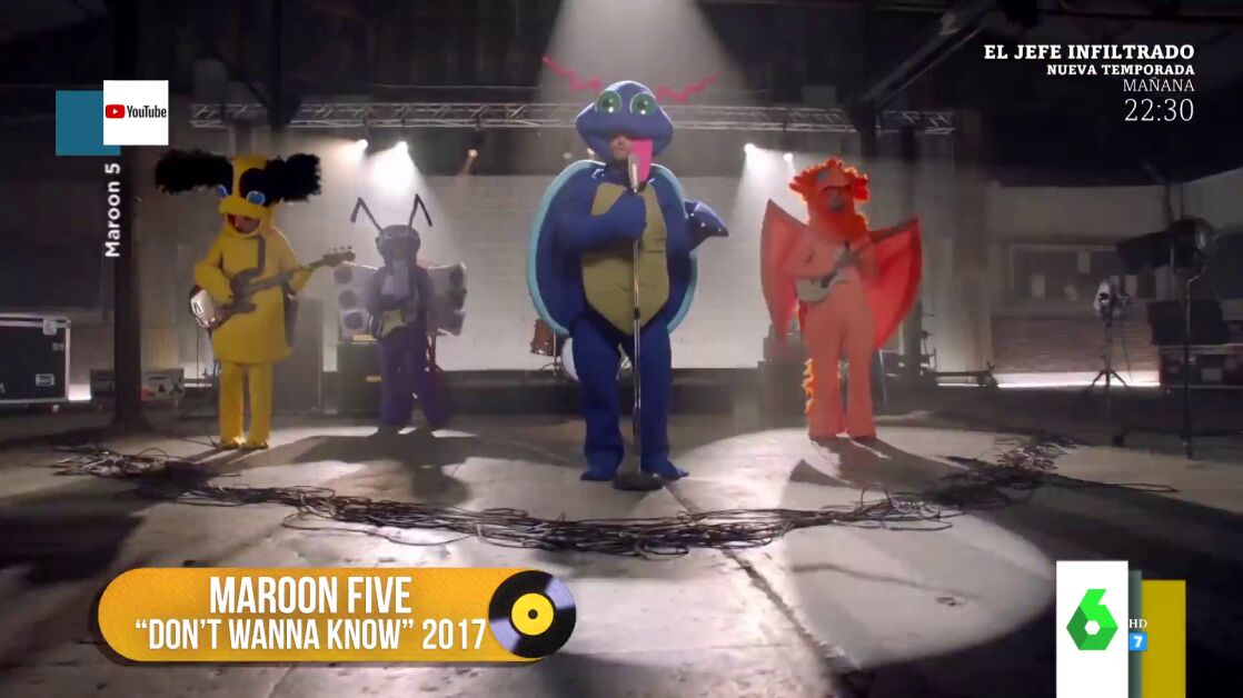 Una retrospectiva que incluye disfraces de animales como el de elefante que "parece un peluche al que han sacado la espuma" de Coldplay en 'Paradise', pero también el de "Pokémon de mercadillo" de Maroon Five en 'Don't Wanna Know', pasando por uno de helado de Blur. Puedes verlos todos en el vídeo principal de esta noticia.