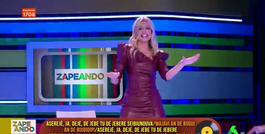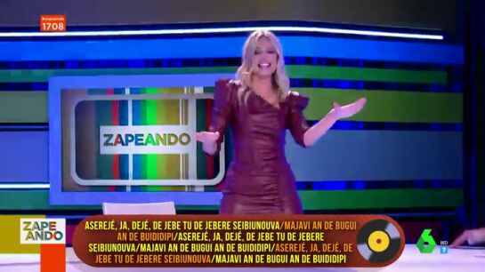 Como cada semana, Renata Zanchi visita el plató de Zapeando para mostrar los detalles más curiosos de la industria musical. Esta vez, la zapeadora repasa las canciones con la letra más surrealista. Uno de los temas más llamativos es 'Aserejé', el conocido tema de 'Las Ketchup' que todo el mundo ha bailado alguna vez como demuestran los zapeadores. Y es que nada más empezar a sonar en el plató, Cristina Pedroche, Dani Mateo, Maya Pixelskaya y Miki Nadal comienzan a bailar su coreografía.
