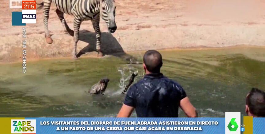 Unos cuidadores del bioparc de Fuenlabrada vivieron una situación muy tensa al ver cómo una cebra recién nacida se dirigía al agua. Por suerte, todo quedó en un susto. En este vídeo, el momento en el que los dos jóvenes logran salvar al animal de morir ahogado.