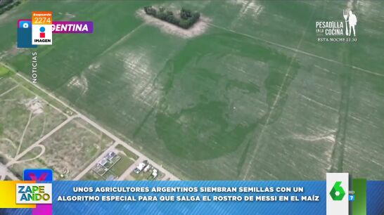 Un grupo de agricultores contratan a un ingeniero para sembrar el grano de maíz de tal forma que en el suelo se dibuje la cara de Messi. Puedes ver el espectacular resultado en este vídeo de Zapeando.