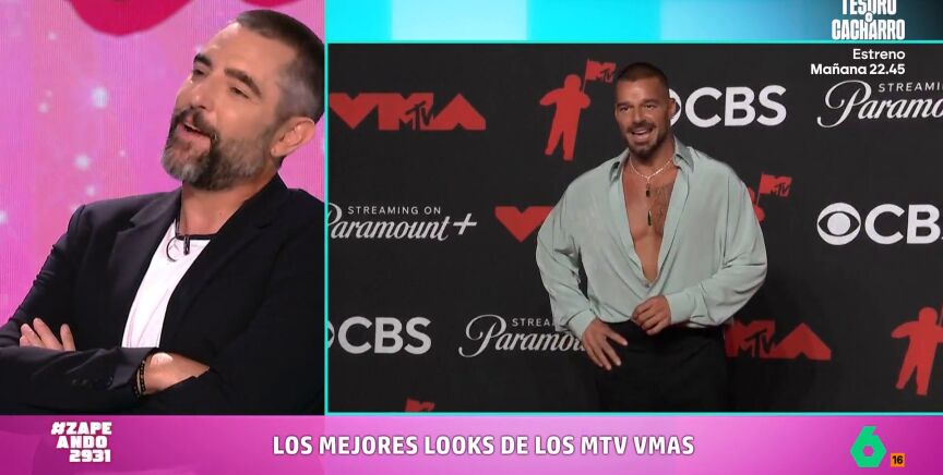 Ricky Martin posaba con una camisa abierta que dejaba al descubierto su pecho. Algo por lo que también apostaba Lenny Kravitz, que, en su caso, llevaba una americana sin nada debajo. "Nos recuerda que, por mucho que nos apuntemos al gimnasio, no vamos a llegar así a los 61 años", comenta Quique Peinado.