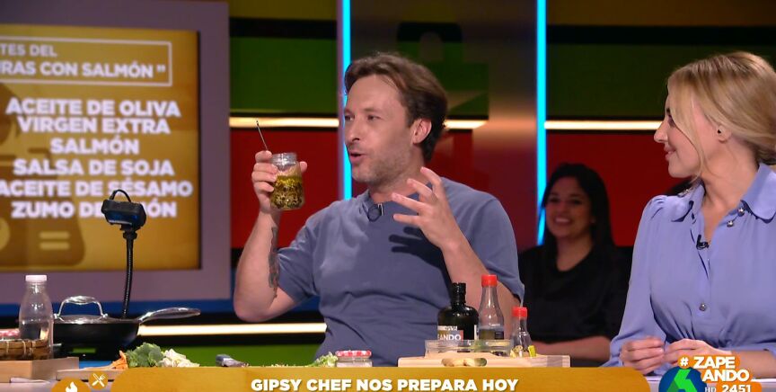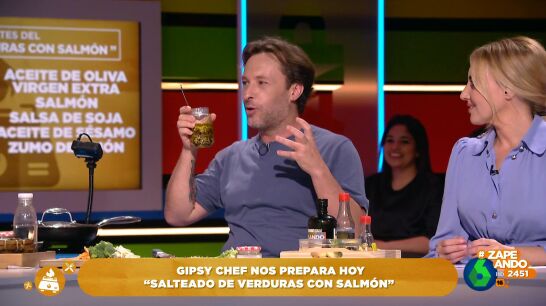 Gipsy Chef vuelve a Zapeando con una receta con la que ha conseguido conquistar a los zapeadores. Se trata de un salteado de verduras con salmón "poketizado", como él lo ha llamado, al que ha añadido un toque especial con lo que él considera, "el aliño perfecto".