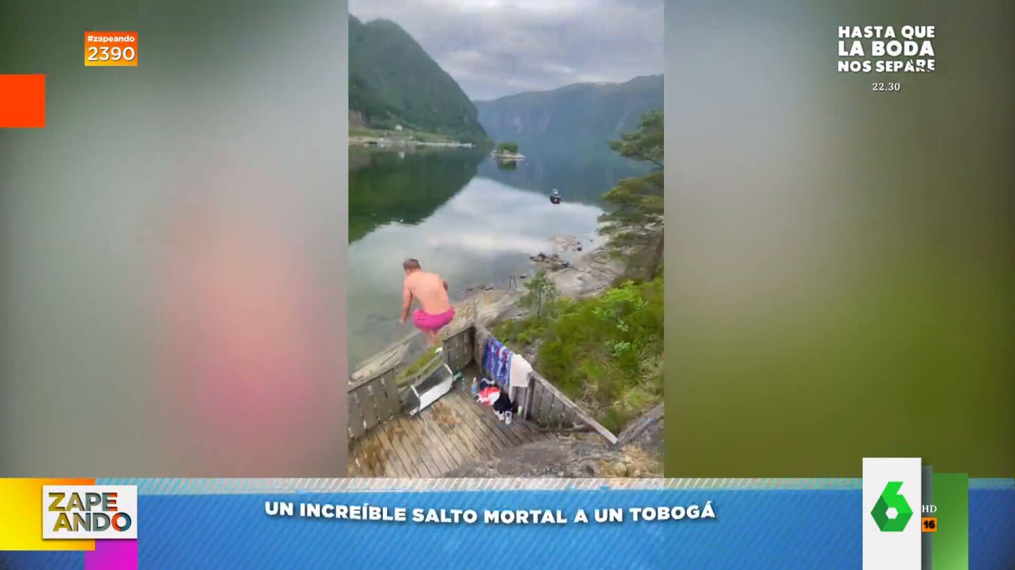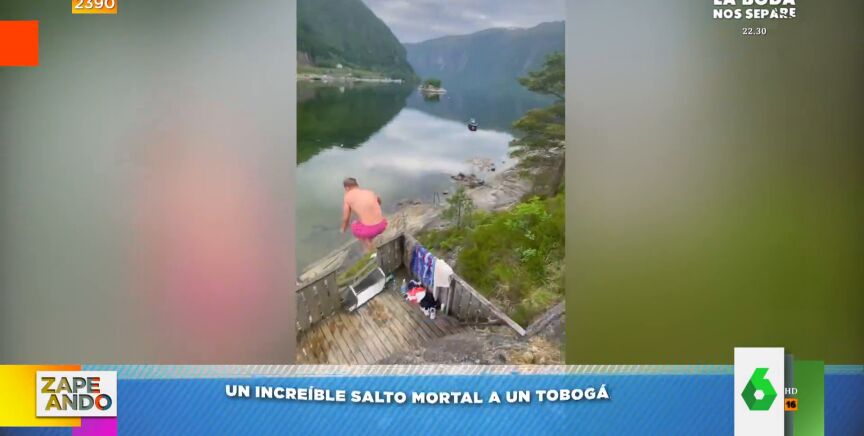 Y, es que, este vídeo virales tan "raro" como "alucinante", ya que recoge "el primer salto mortal que acaba en un tobogán". ¿La razón? El protagonista se da tal golpe cuando salta de la roca al tobogán que el presentador de Zaragoza está convencido que no va a poder "sentarse en todas las vacaciones". "Lo mejor es la risa de su amigo y el silencio de después".