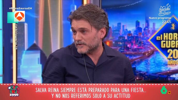 "Me gusta que si tiene confeti no lo puede sacar normal, lo tiene que sacar con alegría", bromea Nacho García tras ver la entrevista de Salva Reina en El Hormiguero.