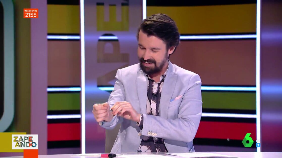 "Aparte de mí, ¿alguien de esta mesa tiene tatuajes o piensa hacerse alguno?", se interesa Dani Mateo, que lanza esta pregunta a sus compis de Zapeando. Y Santi Alverú no duda en contestar: "Yo tengo uno muy cutre", advierte, al mismo tiempo que se remanga para enseñarlo en directo. "Tengo un huevo tatuado", confiesa.