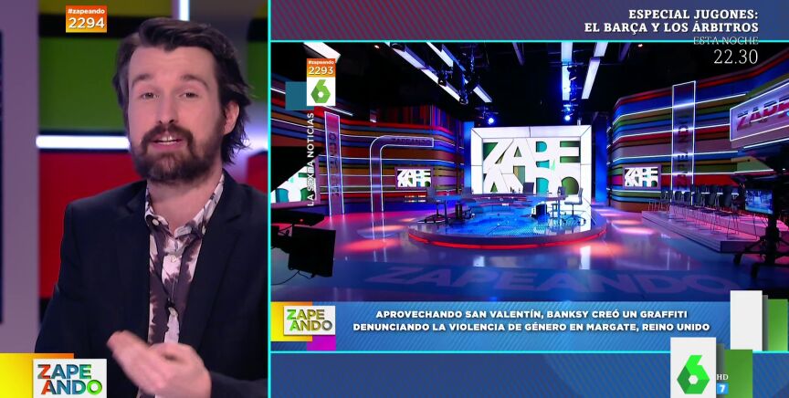 Santi Alverú muestra el momento en el que se cuela unos segundos el plató de Zapeando en los informativos