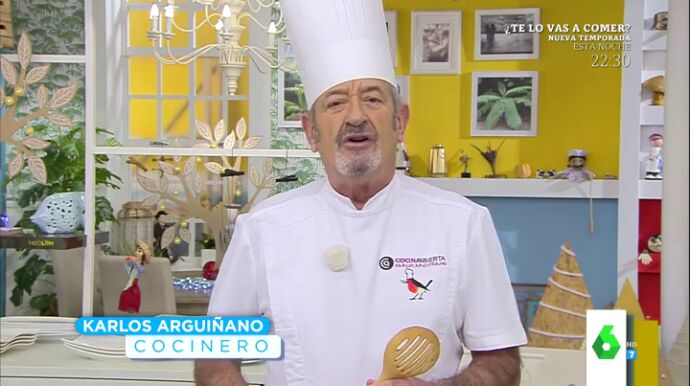 Además, el zapeador recuerda cómo "Dani Mateo se salió del guion y estuvo a punto de cometer una catástrofe" cuando quiso contar un chiste de Karlos Arguiñano. Un momento que evitó el director del programahablando por el pinganillo a todos, como puedes ver en el siguiente vídeo. Ahora, el propio chef manda un divertido mensaje al presentador.