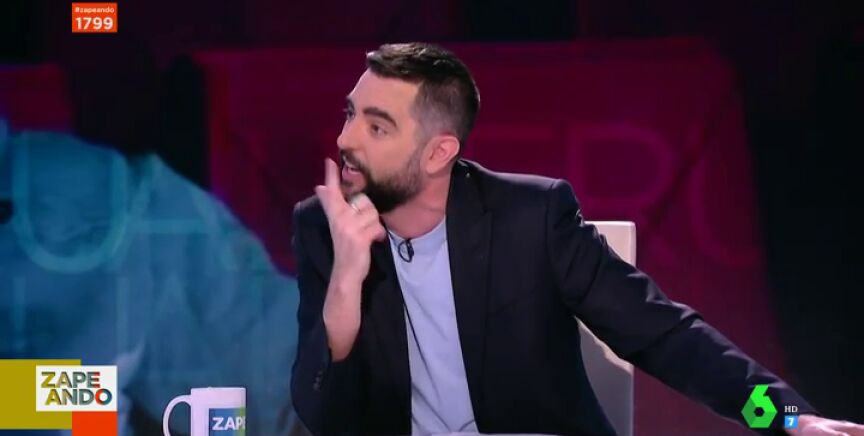 "Raro que no salga a la calle con guardaespaldas", destaca Dani Mateo a Santi Alverú después de que el zapeador le muestre la crítica de un espectador. Una crítica que al presentador realizan mucho y de la que se defiende en este vídeo.