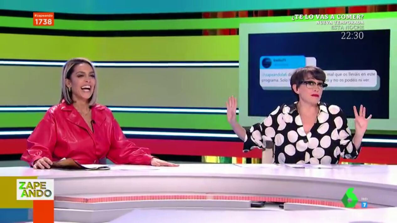 Como Defensor del Espectador, Santi Alverú llega a Zapeando para mostrar las opiniones que los espectadores dejan en redes sociales y en el correo del programa. Es el caso de Emilio, uno de los espectadores, quien ha enviado un tuit afirmando que los zapeadores "disimulan muy mal lo mal que se llevan" porque "no se pueden ni ver".
